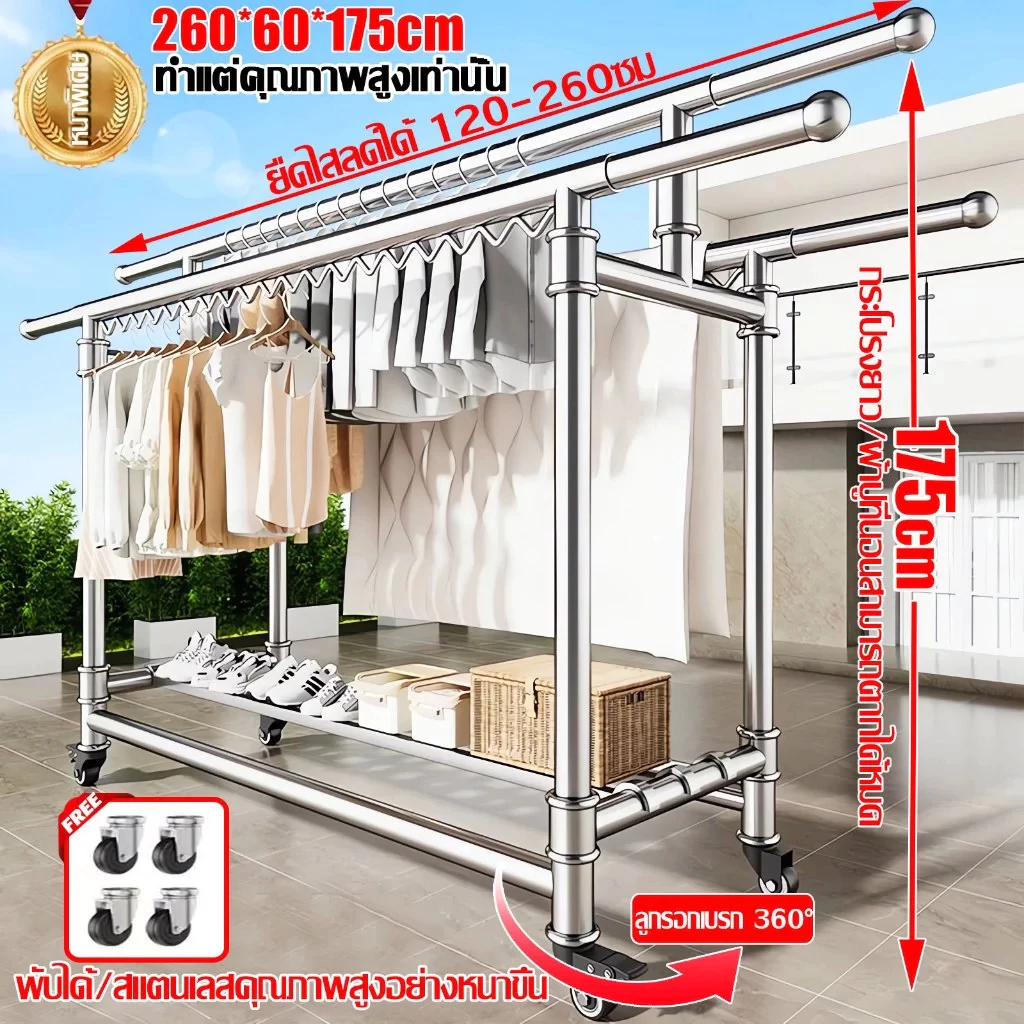 แนะนำ ราวตากผ้าพับได้ ท่อ38 หนาพิเศษ รับน้ำหนักได้ 800 กิโลกรัม จุดเด่นของสินค้าคือ มีขนาดที่ดี ยาว 200 ซม. กว้าง 60 ซม. สูง 165 ซม ราวตากผ้าแบบยืดหดได้ ใช้วัสดุสแตนเลส 304 ที่มีคุณภาพ
